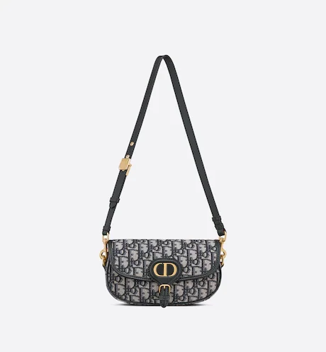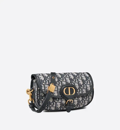 The Dior Bobby East-West bag modernizes the allure of the Hobo silhouette through elegant lines and harmonious proportions. Crafted in blue Dior Oblique jacquard. the style is enhanced by antique gold-finish metal details. and a removable and adjustable sliding shoulder strap with a military-inspired buckle. The medium Dior Bobby bag can be carried by hand or worn over the shoulder. or crossbody for a sportier touch.