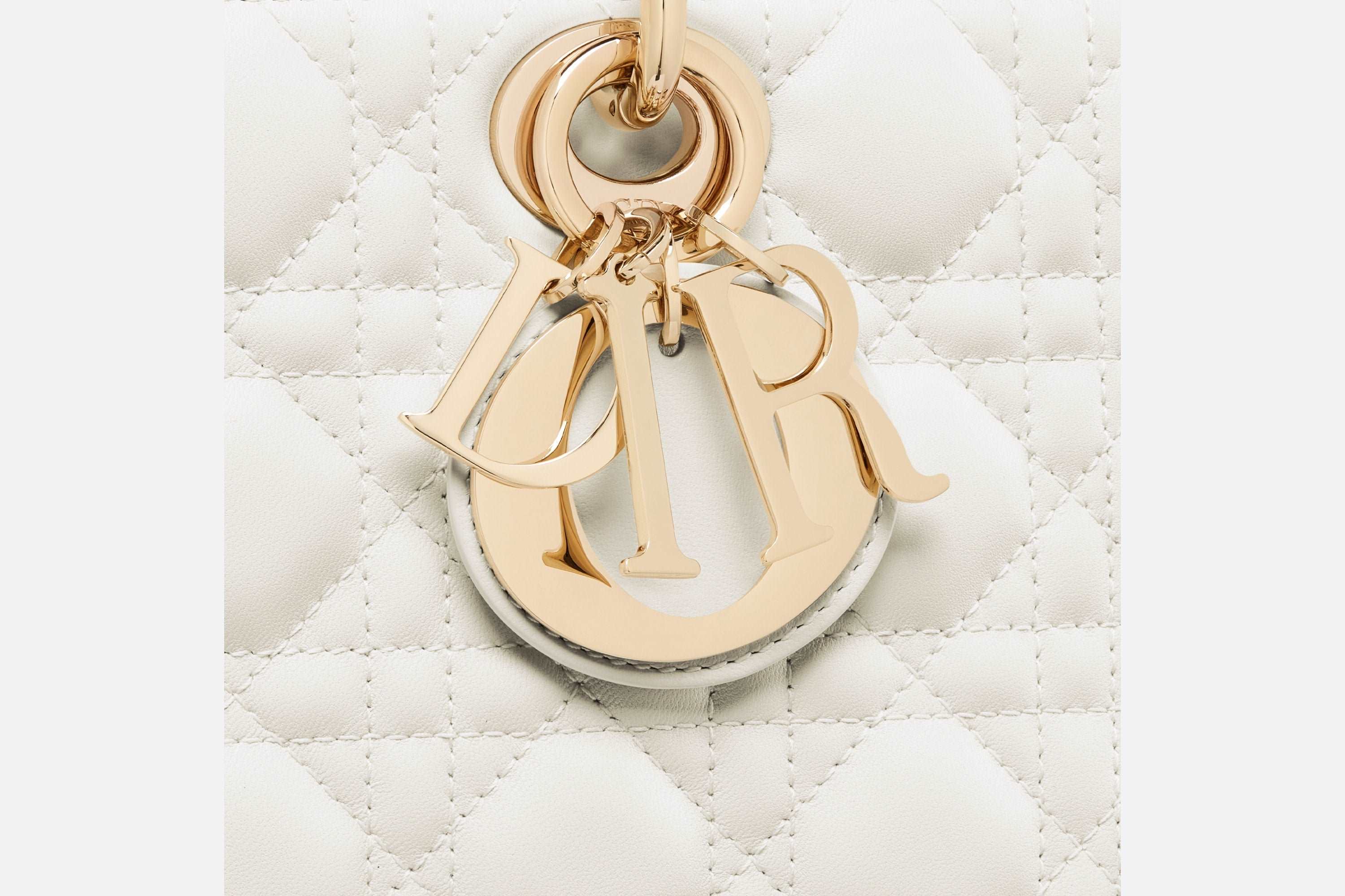 メゾンのビジョンであるエレガンスと美を体現した「レディ D-ジョイ」バッグ。スタイリッシュで洗練されたタイムレスなスタイルは、「レディ ディオール」ラインらしいすっきりとしたデザインが魅力です。「カナージュ」ステッチを施した、ラテカラーのラムスキンで仕立てました。ペールゴールドトーンのメタル製D.I.O.R.チャームがシルエットを引き立てます。取り外しが可能なチェーン ショルダーストラップと、長さの調節と取り外しが可能なレザー ショルダーストラップが1本ずつ付属。ハンドバッグとしてはもちろん、クロスボディバッグとしてもお楽しみいただけ、普段使いに最適なミディアムサイズのモデルです。