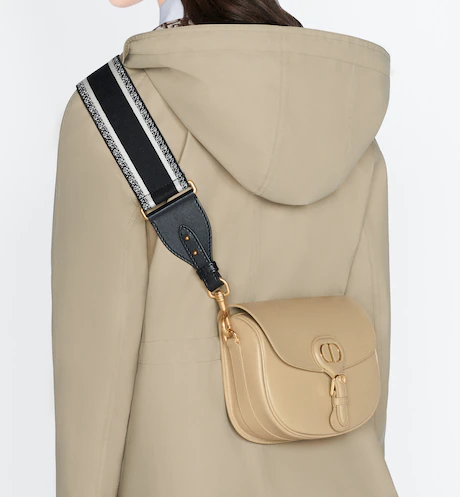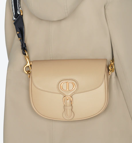 The Dior Bobby bag is a hobo style showcasing sophisticated lines and harmonious proportions. The silhouette is crafted from gray box calfskin with a suede calfskin interior for added suppleness. and is enhanced by antique gold-finish metal hardware. Its removable and adjustable shoulder strap has a military-inspired buckle. and allows the medium bag to be carried by hand. worn over the shoulder or crossbody.