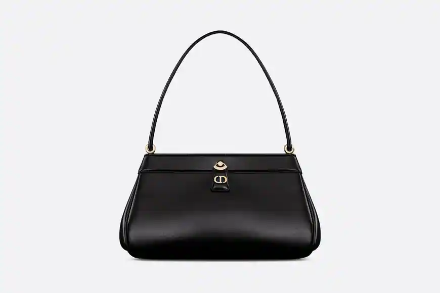 A pillar of the Spring-Summer 2023 fashion show. this season's new Dior Key bag draws inspiration from House archives to create a style with retro charm. Offered in black box calfskin. it is distinguished by a CD twist clasp inspired by an exclusive lock and revealing a spacious compartment to accommodate all the essentials. Featuring thin leather handles. the refined medium bag can be worn over the shoulder or carried by hand to accompany all of this season's attire.
