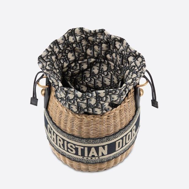 天然のウィッカーを昔ながらの手作業で編み上げた、タイムレスな「Dior Wicker (ディオール ウィッカー)」バケットバッグは、ディオールのサヴォワールフェールを体現したアイテム。ブルーの「ディオール オブリーク」ジャカードを使用したインナーポーチには、パッチポケットとドローストリングクロージャーを配しました。アイコニックなディオール「ブック トート」に着想を得た“CHRISTIAN DIOR”シグネチャーの刺繍入りバンドを飾ったこのバッグは、幅広の刺繍入りショルダーストラップを備えており、ショルダーまたはクロスボディスタイルでお使いいただけます。