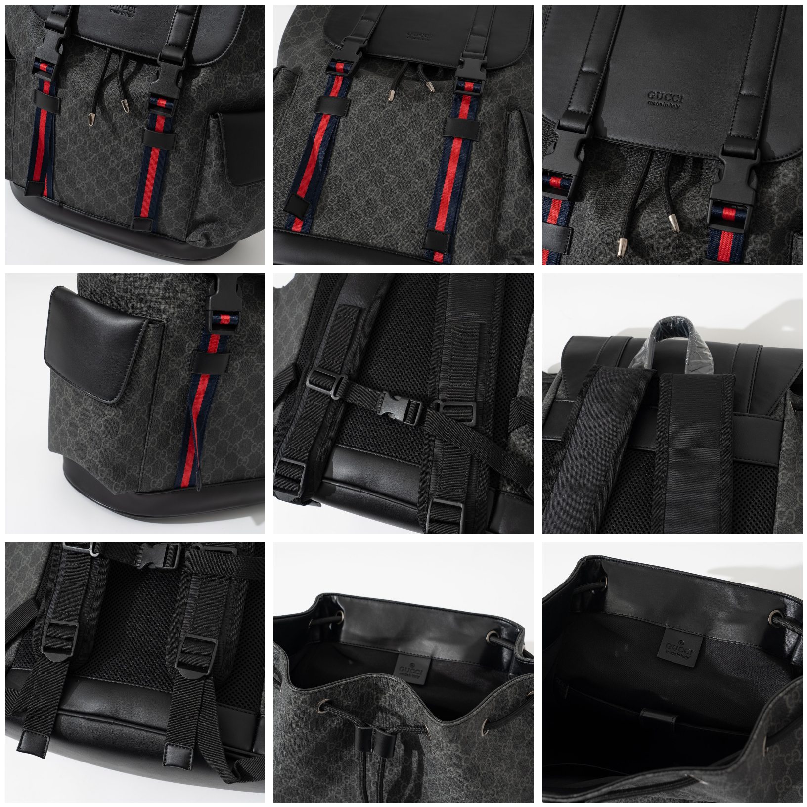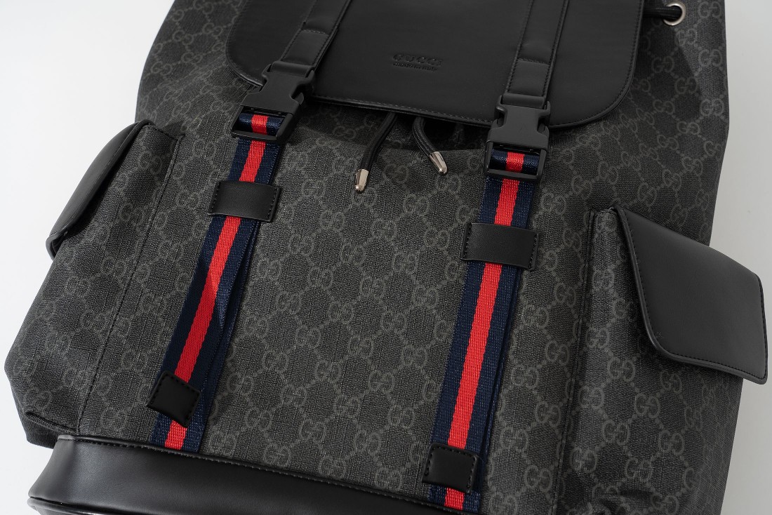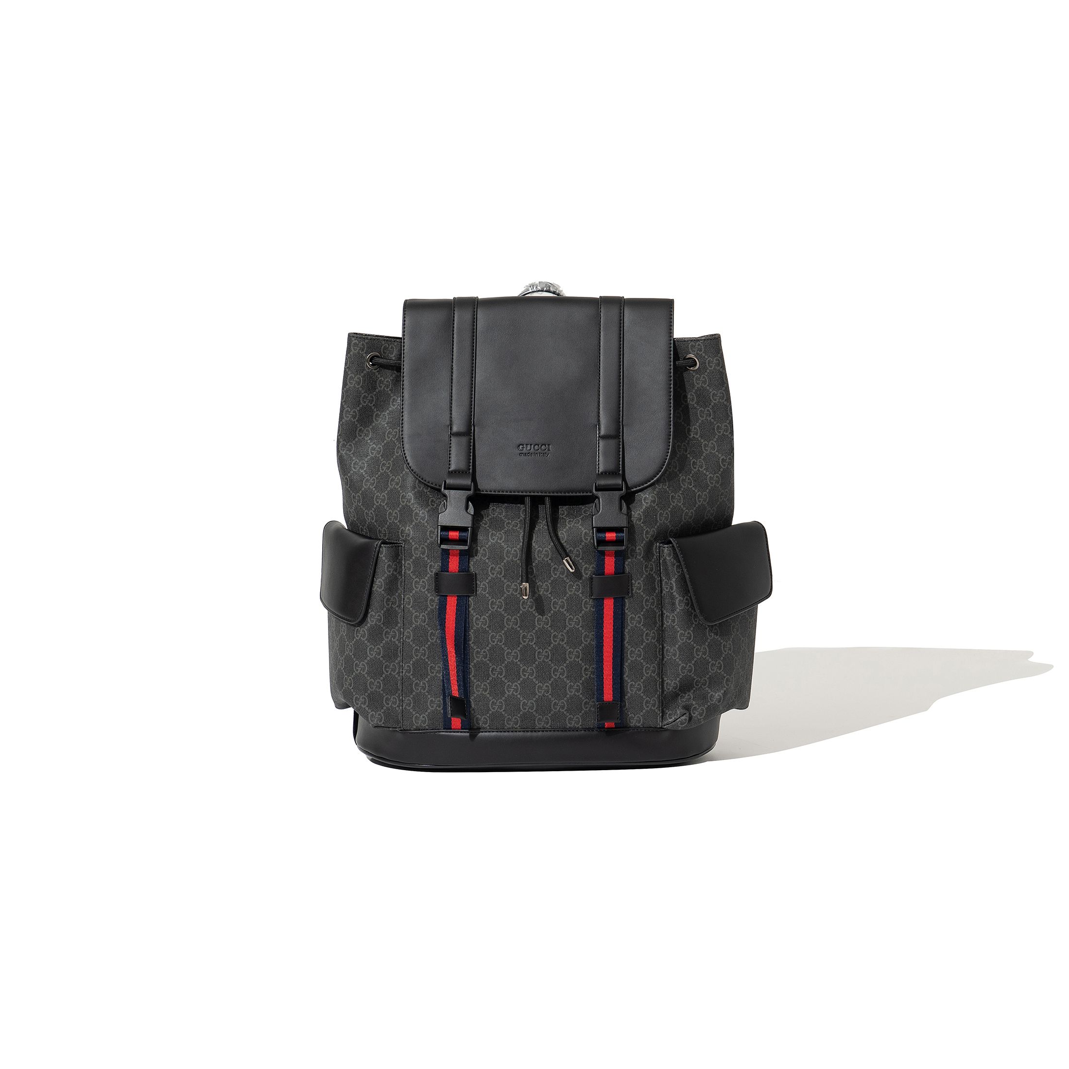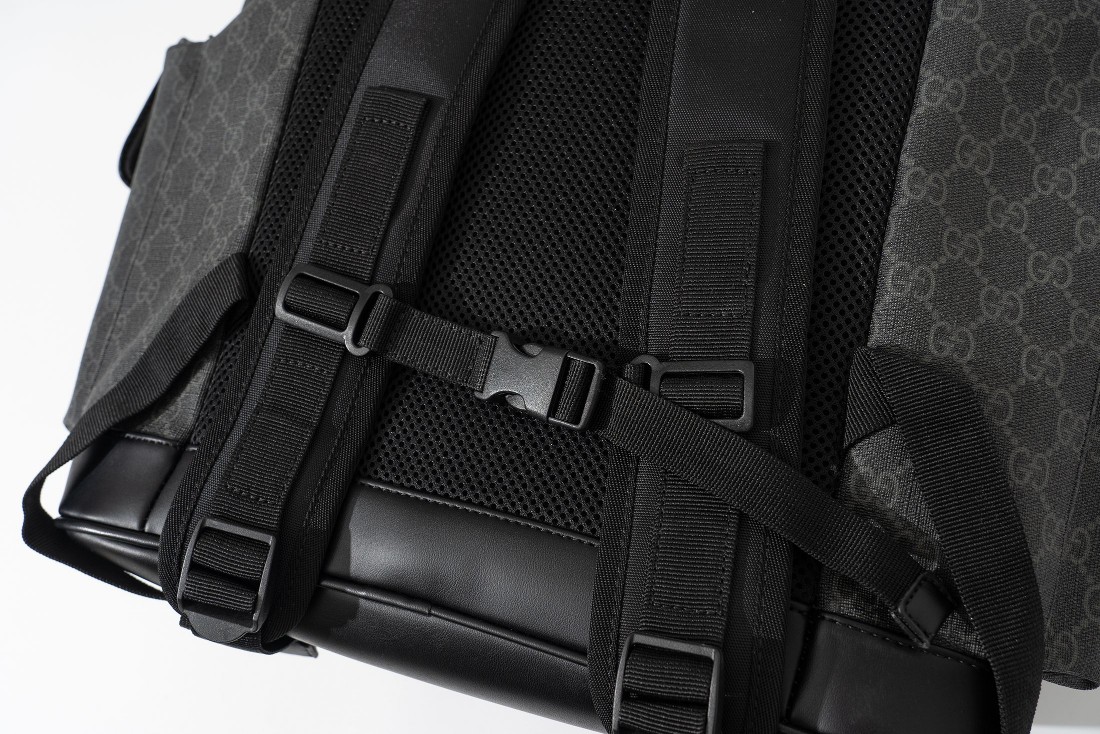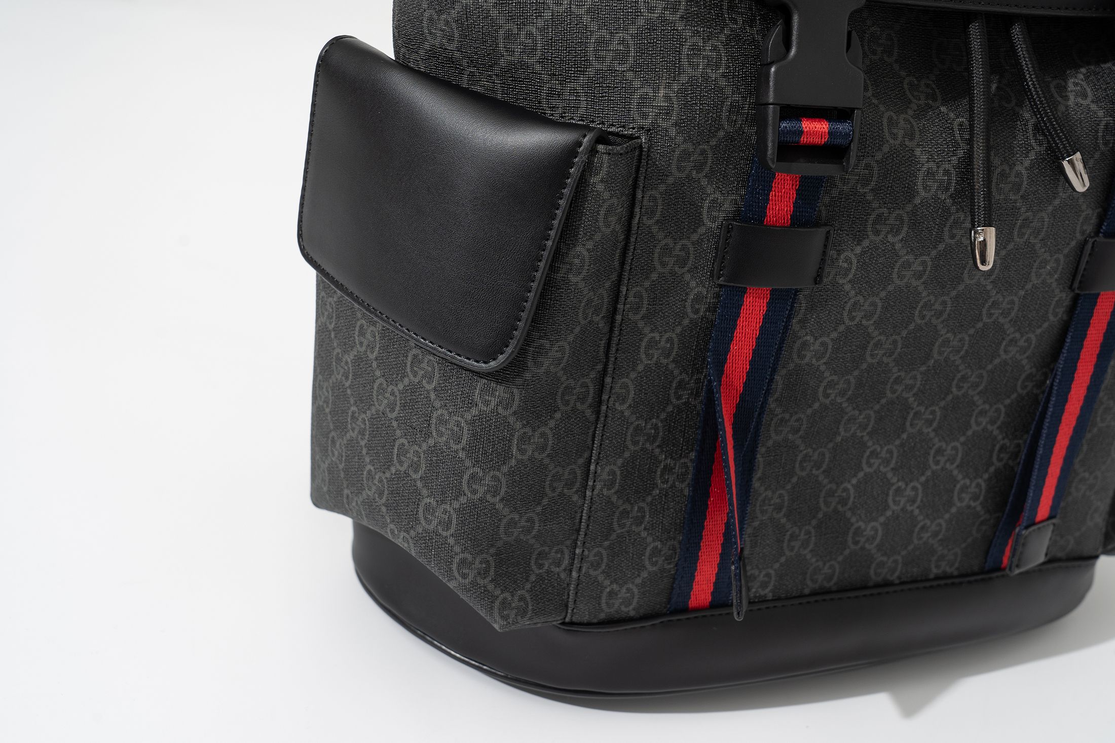 GGパターンは印象的なブラック/グレーのコンビネーションで、ウェブで装飾されたショルダーストラップとブラックのレザーパイピングが引き立てます。 ソフトな GG スプリーム キャンバスから作られ、マイクロファイバーでコーティングされた生地から作られ、繊細な GG パターンで装飾された GG スプリーム キャンバスのより柔らかいバージョンです。