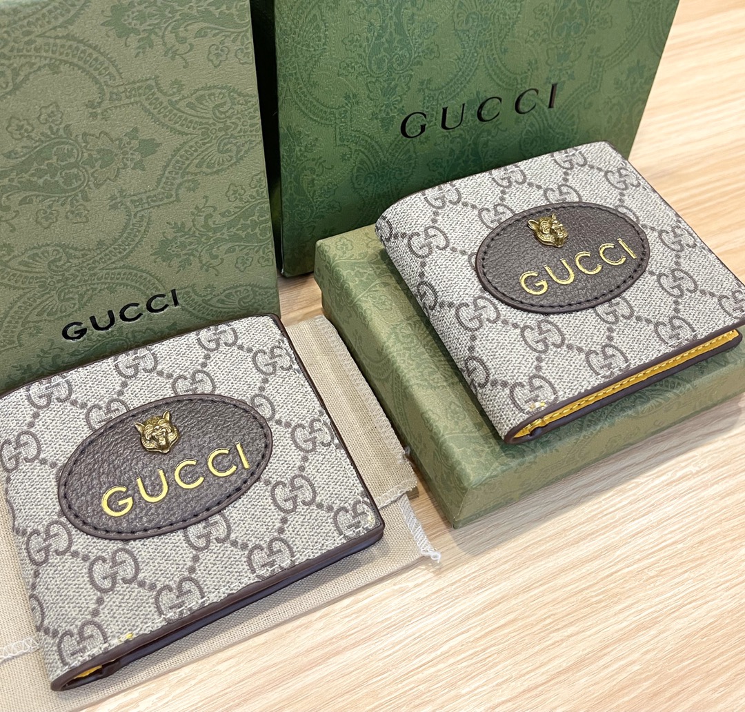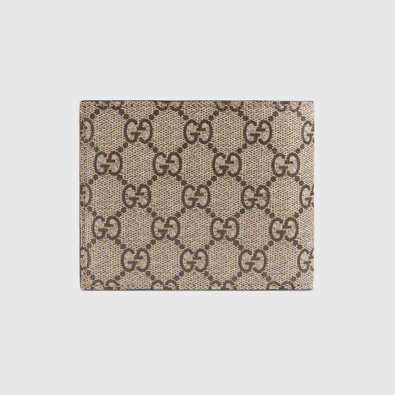 ヴィンテージにインスピレーションを得たGGスプリーム キャンバスのレザーアクセサリー。ひときわ印象的なオーバル レザー タグには、アレッサンドロ・ミケーレのエキセントリックな感覚から生まれ、今やグッチのコードのひとつとなったメタル キャットヘッドがあしらわれています。ウォレットの内側は、イエロー レザーが彩ります。