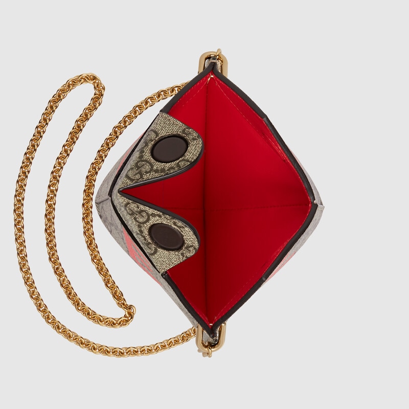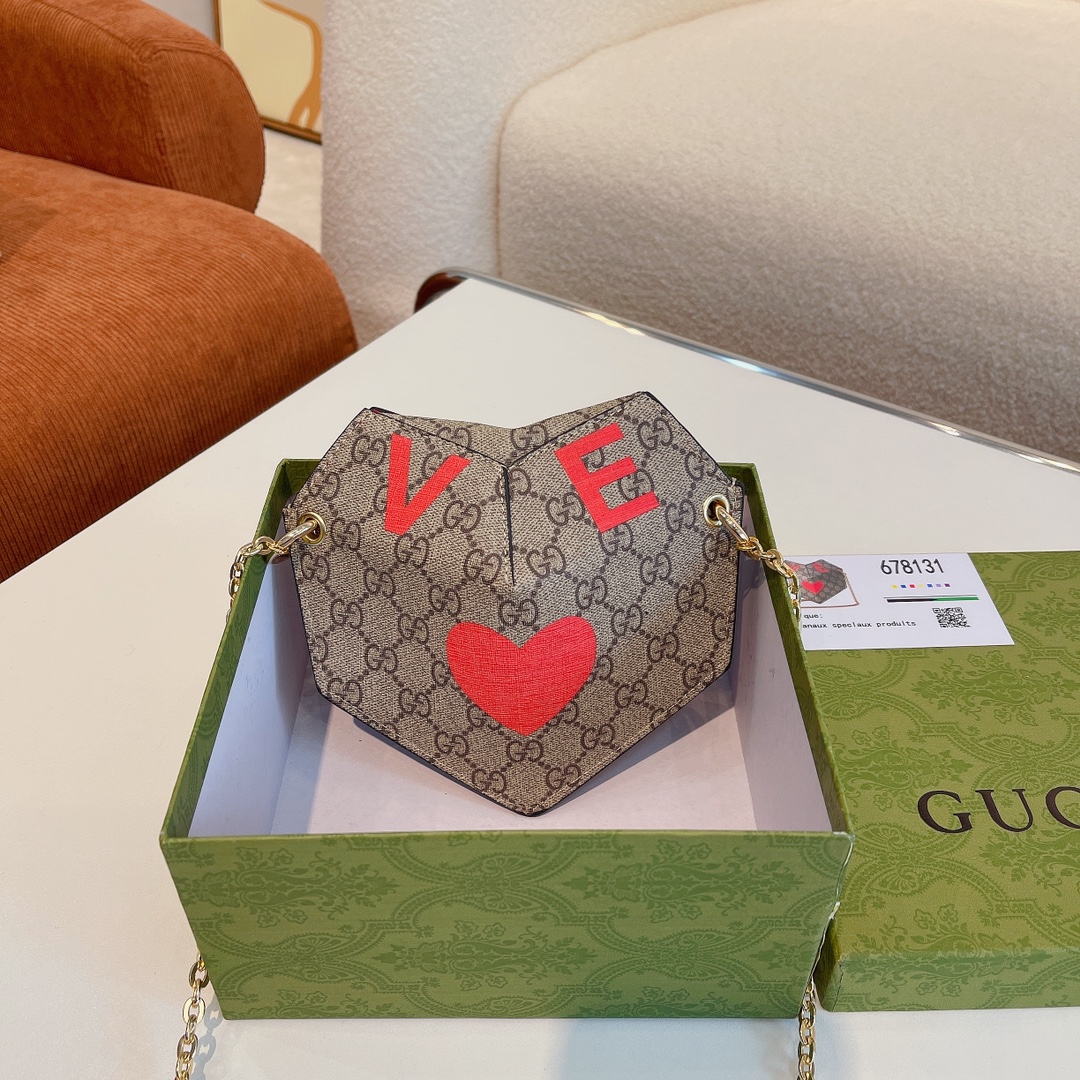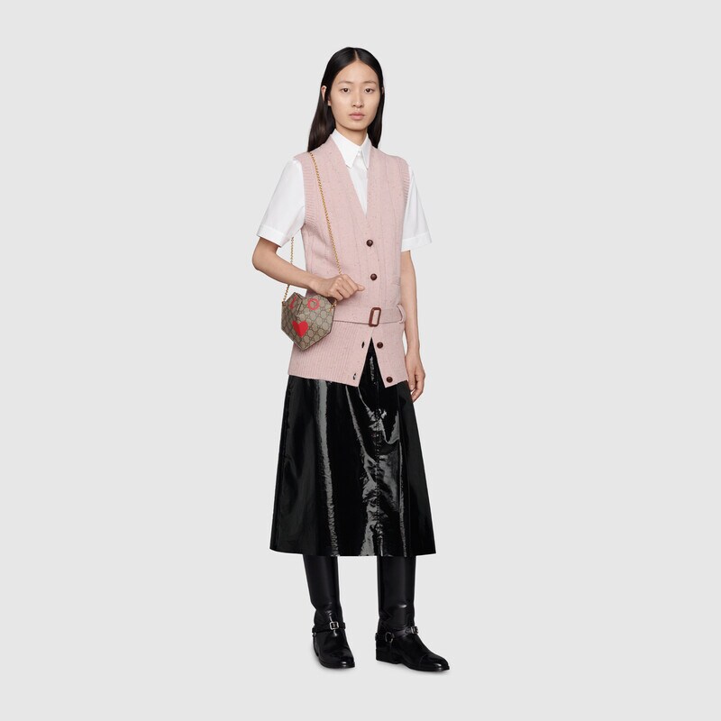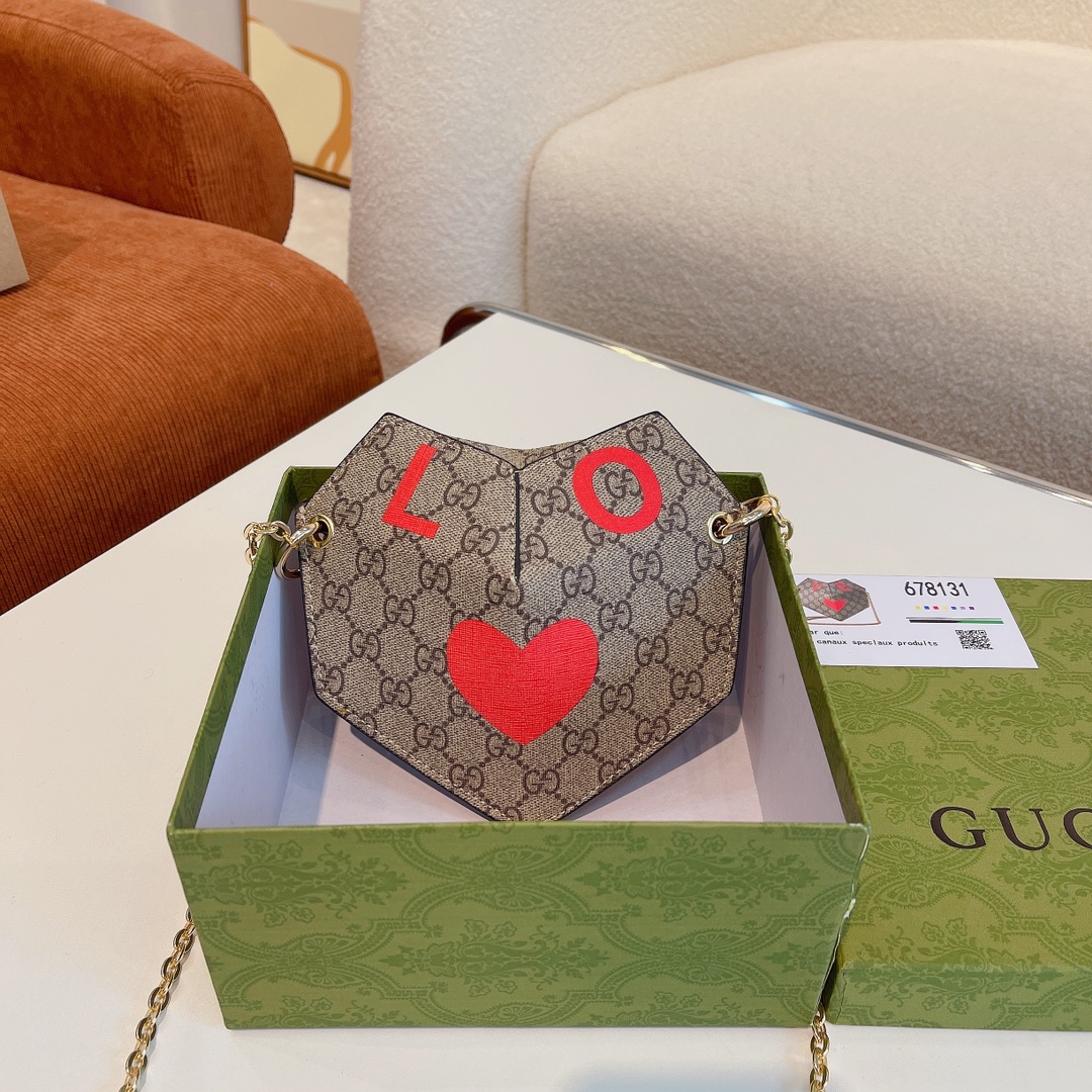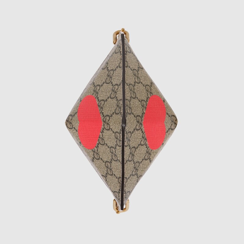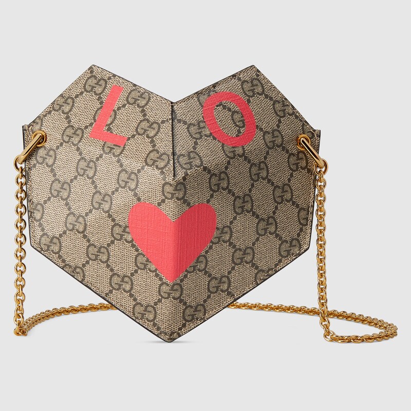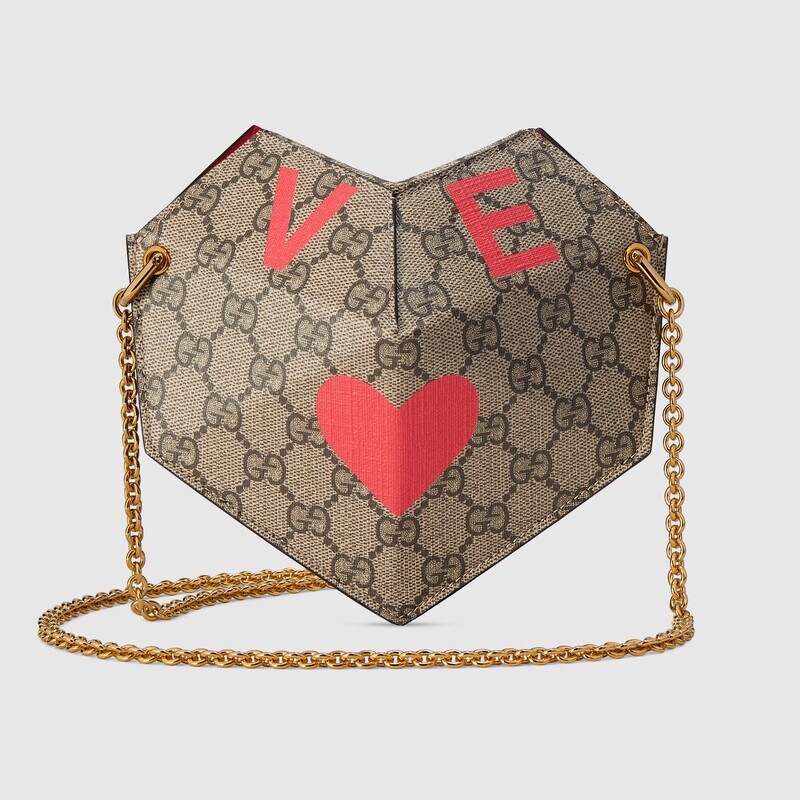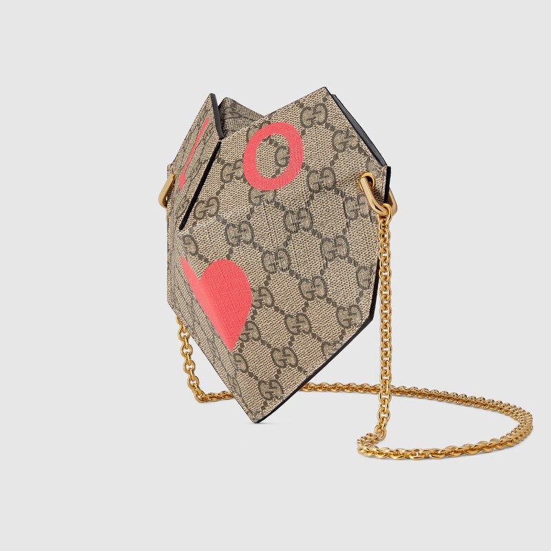 バレンタインデーのために作成されたこのコレクションは、ブランドのロマンチックな美学に敬意を表してカラフルな作品を特徴としています。 このハート型のバッグは、ロマンチックでお祭りのような外観のために「愛」の文字で装飾されています。 この小さなショルダーバッグはGGSupremeキャンバスでレンダリングされ、グッチオグッチ氏のイニシャルで装飾されています。これはブランドの伝統に微妙にうなずきます。- ベージュとエボニーのGGSupremeキャンバス、環境にやさしい素材