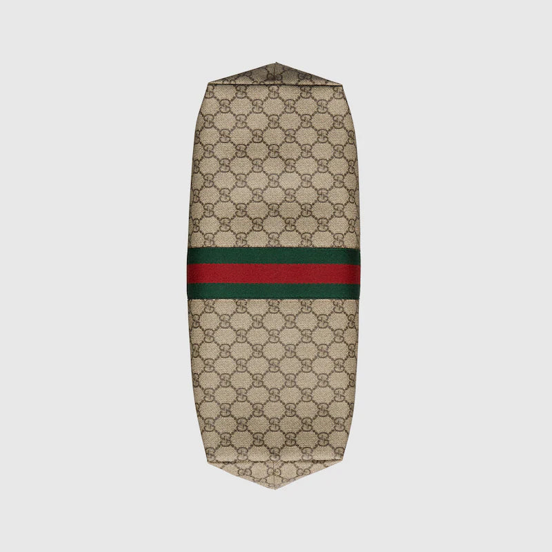 グッチの代表的なモチーフ、ダブルGとウェブ ストライプをクラシカルに組み合わせた〔オフィディア〕ラインに、新たなフォルムやシルエットを取り入れた新作が登場。使いやすい新しいシェイプに、ラインを象徴するディテールを施したミディアムサイズのトートバッグです。テクスチャードレザーのトリムを施し、ダブルG ハードウェアを配しています。