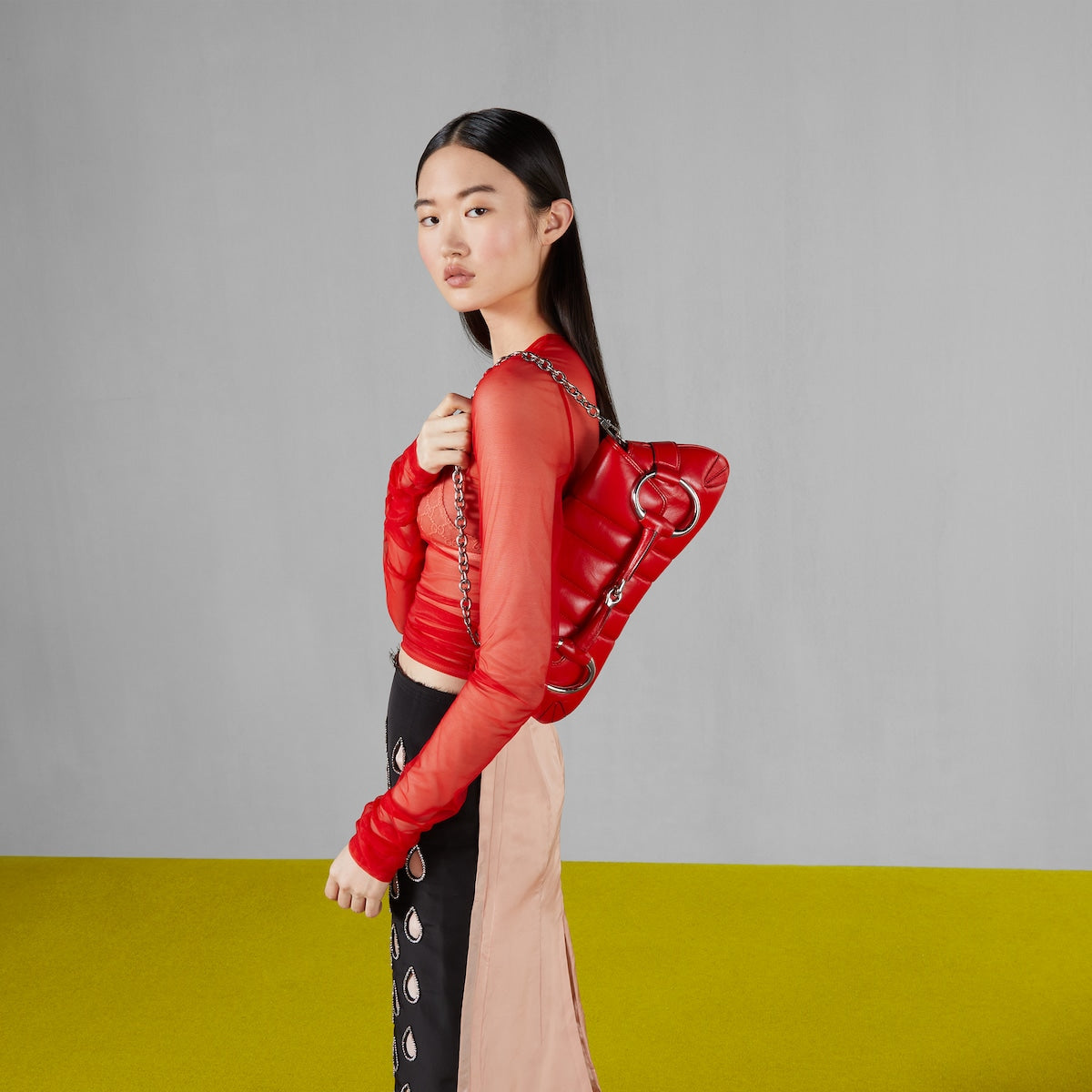 グッチはアーカイブと現代を結びつけることで、グッチの歴史との深いつながりを呼び起こしています。2000年代初頭に人気を博したマキシサイズのホースビットを飾ったこのハンドバッグは、現在もグッチならではのデザインとして知られています。2023年秋冬コレクションでは、コンテンポラリーなアプローチを取り入れ多様なカラーやテクスチャーで登場しました。