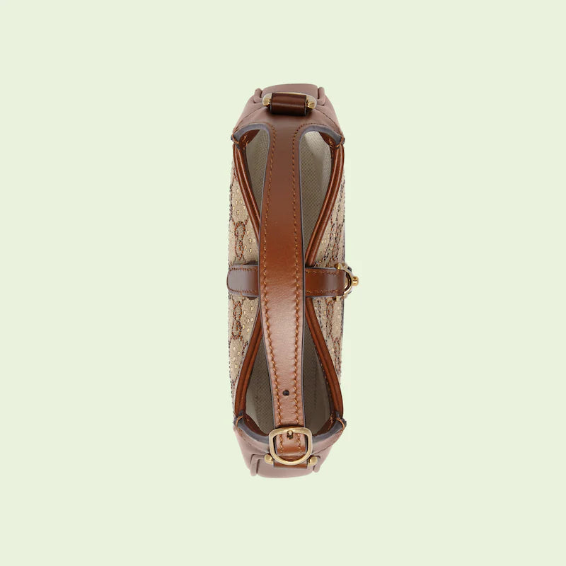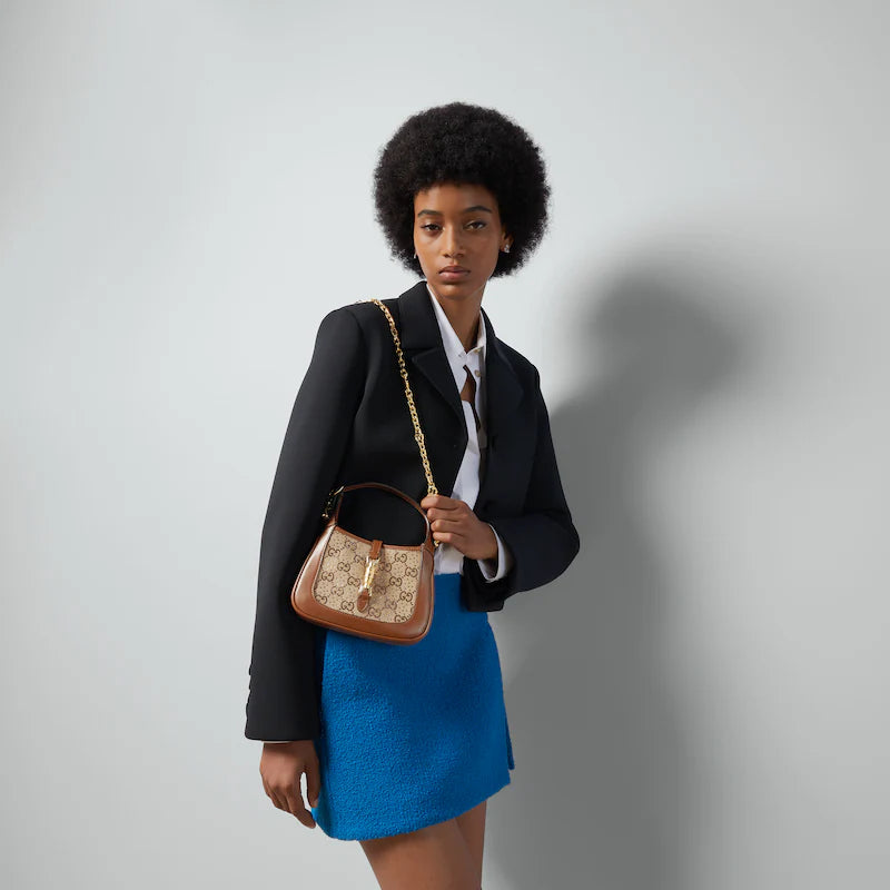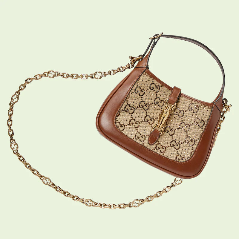 独特のシェイプが特徴の〔ジャッキー 1961〕バッグをタイムレスなキャメル&エボニー GGキャンバスで仕立て、クリスタルを散りばめて折衷的なニュアンスをプラスしました。アーカイブデザインにコンテンポラリーな雰囲気を加える、取り外し可能なストラップ付き。トップハンドルバッグからショルダーバッグ、クロスボディバッグまでさまざまなスタイルでお使いいただくことができます。