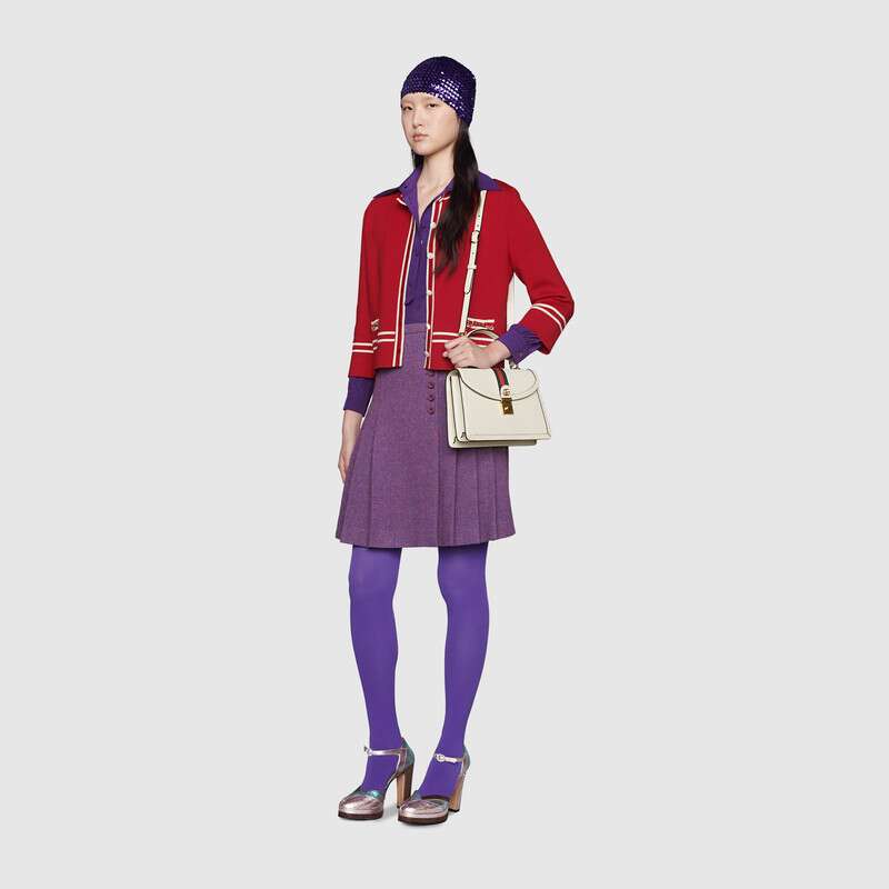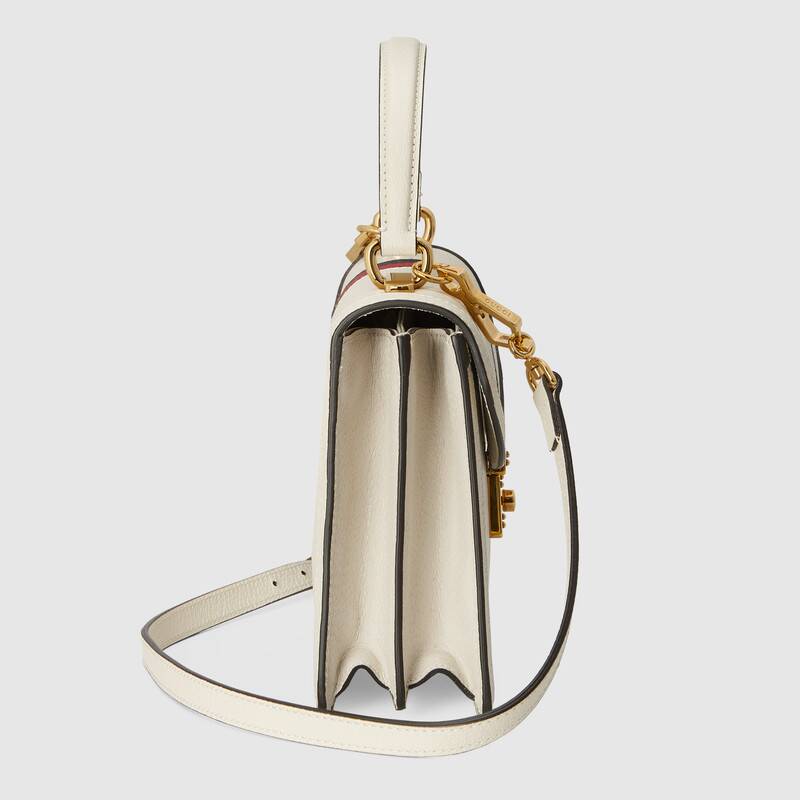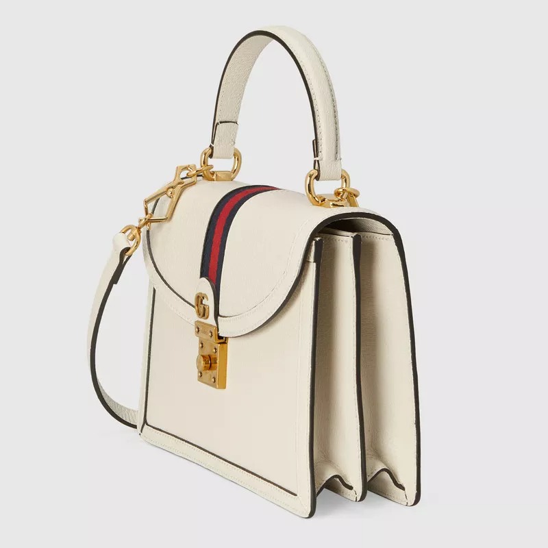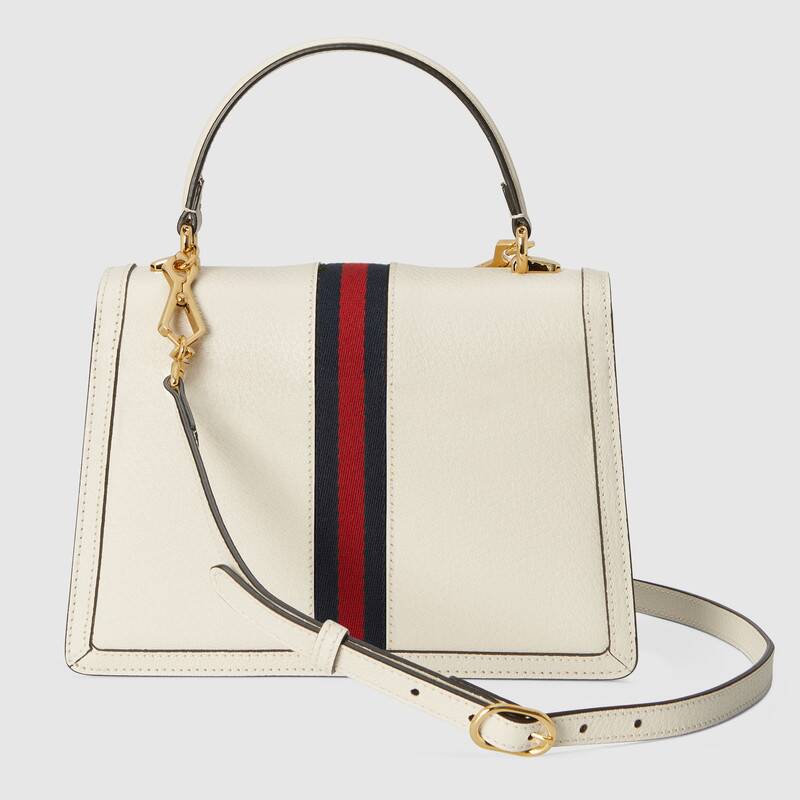 オフィディアコレクションは成長を続けており、毎シーズン驚くほど新しいアイテムが追加されています。 エピローグコレクションの一部であるこのトートバッグは、白い革で作られ、取り外し可能なショルダーストラップが付いています。 正方形のレトロな形状は、ブランドの特徴的なストライプのウェビングと、70年代のグッチアーカイブベルトバックルのデザインに触発されたダブルG字型のアクセサリーを組み合わせており、現代的な美的解釈の後にブランドのシンボルの1つになっています。