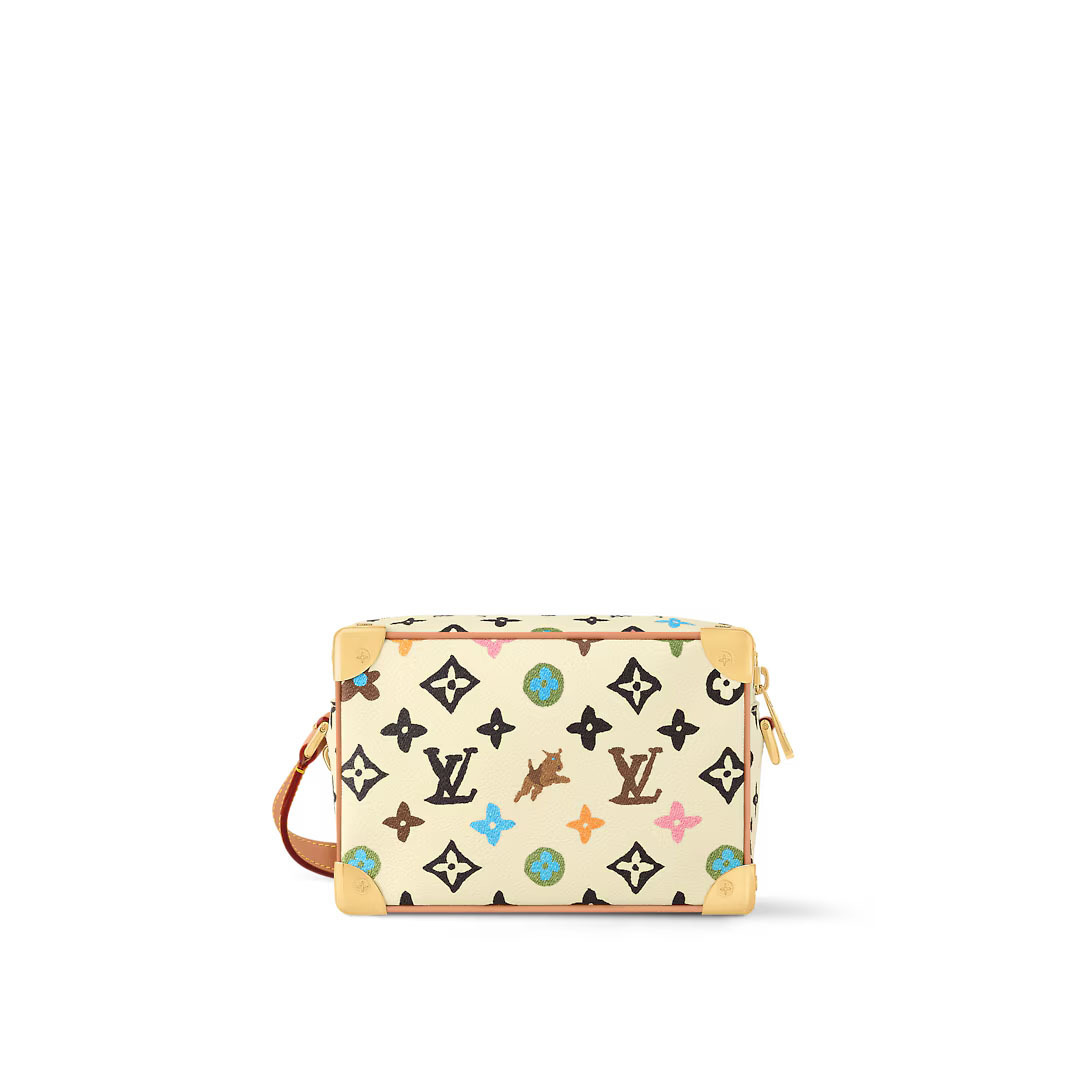 伝統とモダンな雰囲気を融合したミニ・ソフトトランクをモノグラム・クラギー キャンバスで仕立てました。モノグラム・フラワーとLV シグネチャーに加え、デイジーやテリアを添えて手描き風にアレンジしたパターンが特徴です。調節可能なストラップにつながったチェーンは、フロントファスナーの装飾的なチェーンと同じゴールドカラーで仕上げました。