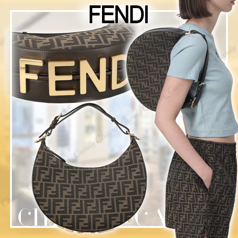 • 【24SS NEW】FENDI / FF ジャカード メタルロゴ ホーボーバッグ