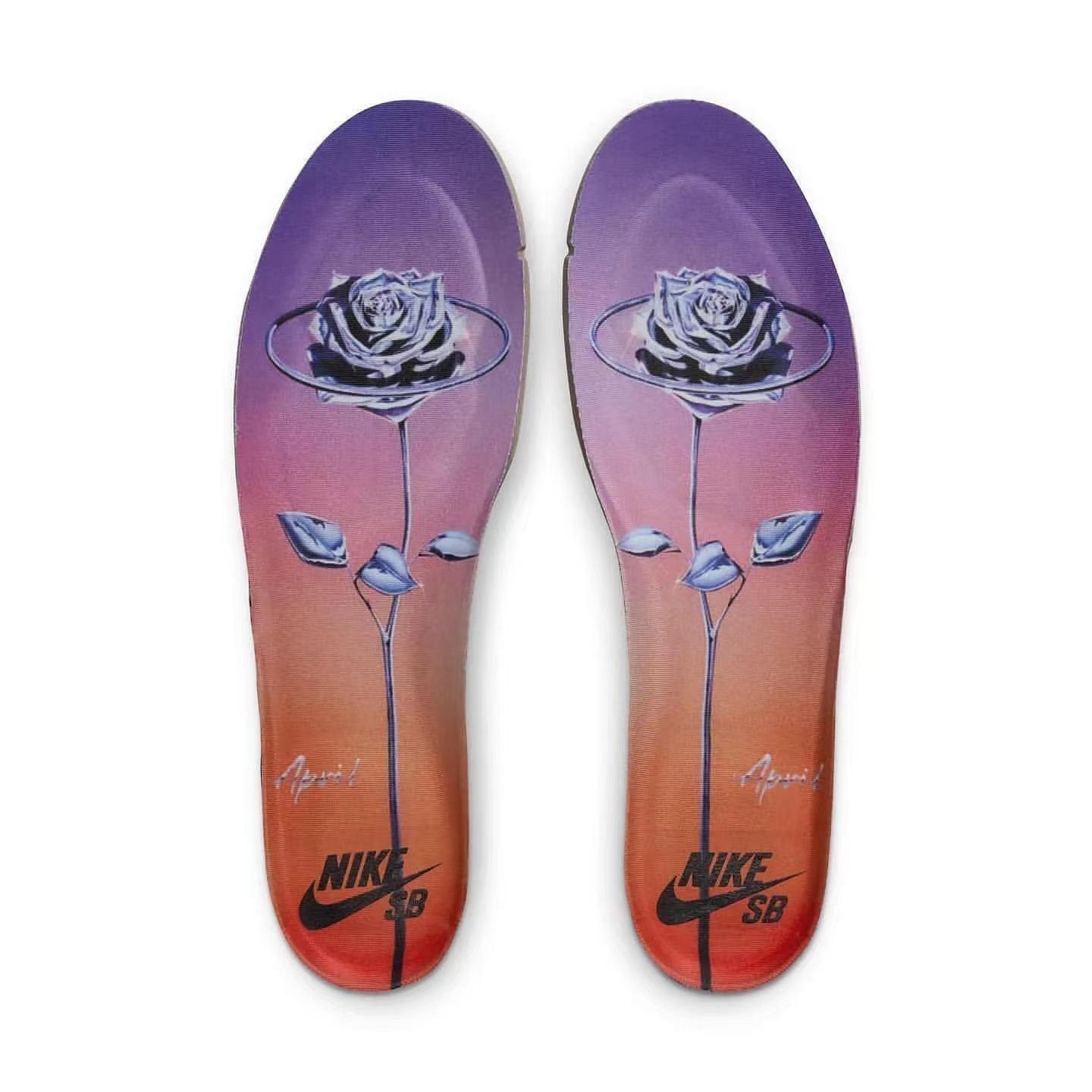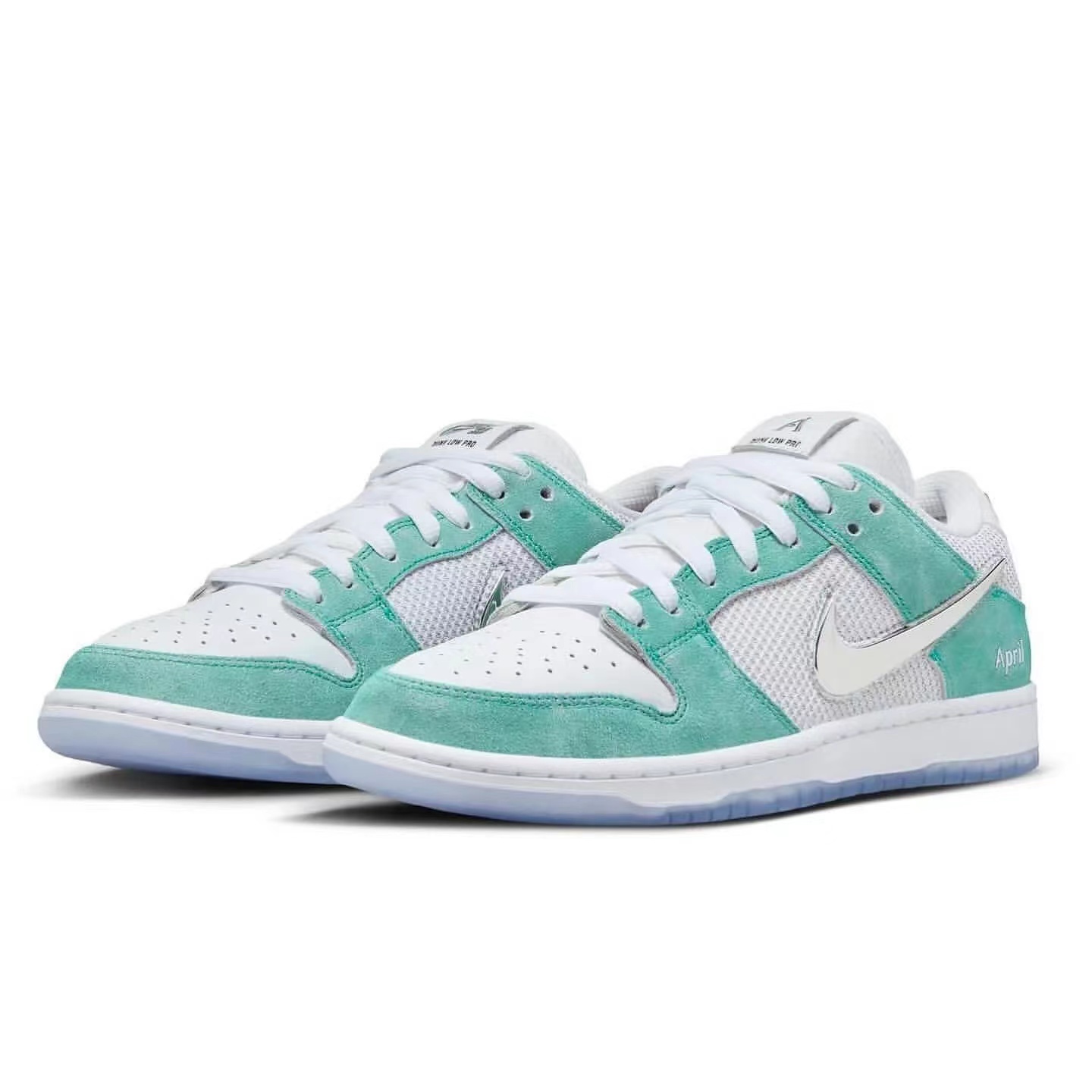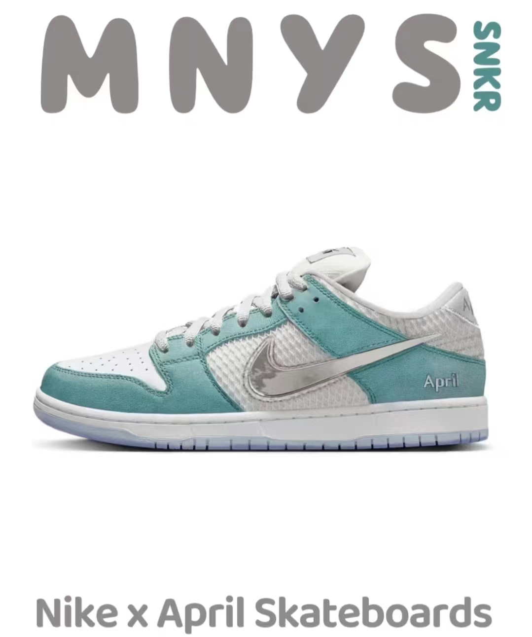 Nike SBとApril Skateboardsのコラボレーションから、スニーカー史に名を残すであろう爽やかなダンクが登場。80年代にバスケットボールシューズとして発売されたダンクは、その後ストリートウェアの世界に進出し、続いてスケートボードの伝説的なシューズとなる。今回はこのクラシックなシューズのシリーズに、柔らかいスエード、滑らかなレザー、風通しの良いニット素材を使用し、軽量で柔軟性に優れた履き心地を追求した。グリップ性のあるトランスルーセントのアウトソールからは、Aprilによるローズのカスタムグラフィックがのぞくデザイン。メタリックシルバーの仕上げと成型加工によるシルバーのスウッシュパネルが未来的な輝きをプラスする。デザインを完成させるのは、2つのブランドのロゴ。インソールを見れば、これが特別なダンクであることがわかるはずだ。シューズを履いたらスケートボードを楽しもう。