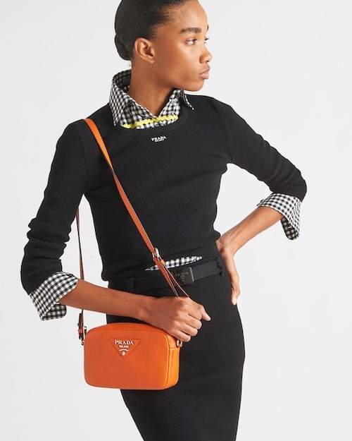 Prada のクラシックなロゴを再解釈したもので、中央には三角形の