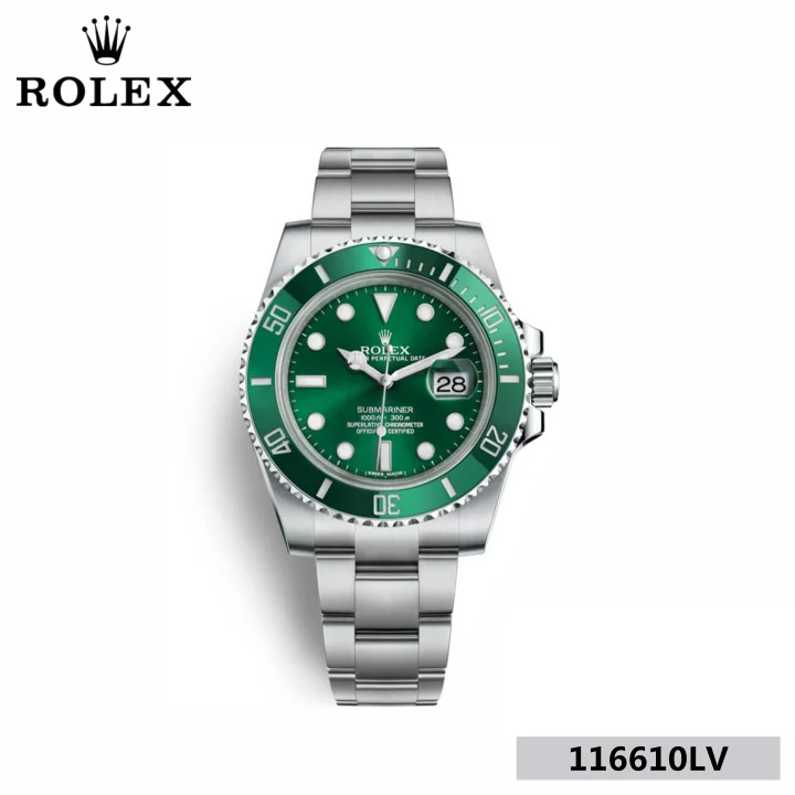 型番 116610LV 品名 サブマリーナ シリアル ランダム ムーブメント 自動巻き 文字盤色 グリーン サイズ ケース径:約40mm 腕周り最大:約20cm 商品説明 ☆ロレックスのコーポレートカラーグリーンを使用したサブマリーナデイトです。紫外線の影響を受けなくいつまでも美しいグリーンセラクロム製ベゼル ウェットスーツの上からも装着できるように最大21mmの延長が可能なグライドロッククラスプなどの新機能も完備しております。
