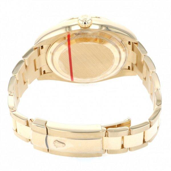 18 ct イエローゴールドのオイスター パーペチュアル スカイドゥエラーは、ブラックダイアルとオイスターストラップを備えた時計で、ダイアル上のオフセンターに配置したディスクで第2タイムゾーンを表示する。