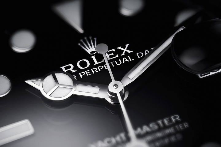 すべてのロレックス プロフェッショナルウォッチと同様に ヨットマスター 42はクロマライト ディスプレイにより どのような状況でも特に暗闇の中で優れた視認性を誇る。幅広の針と三角形 形 長方形といったシンプルな形のアワーマーカーには ブルーの光を放つ長時間継続の発光素材が採用されている。