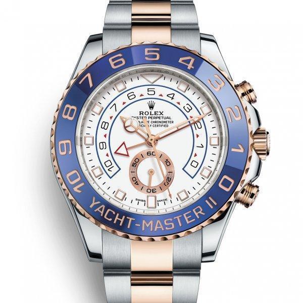 ヨットマスターⅡは、ロレックスのプロフェッショナルモデルの特徴である新しい針が採用された新ダイアルを搭載。視認性が向上し、デザインの美しさが際立つ。新しいダイアルのアワーマーカーは12 時位置が三角形、6 時位置が長方形で、より直感的に時刻を読み取ることができる。時針の先端は発光性のディスク型になり、分針とはっきり区別することが可能だ。ヨットマスターⅡは 1 分~ 10分までのカウントダウンをプログラムできる機能が搭載されている。プログラミングは機械に記憶されるため、リセットすると前回の設定に戻る。レース開始後は、公式カウントダウンに合わせ、瞬時に同期させることができる。