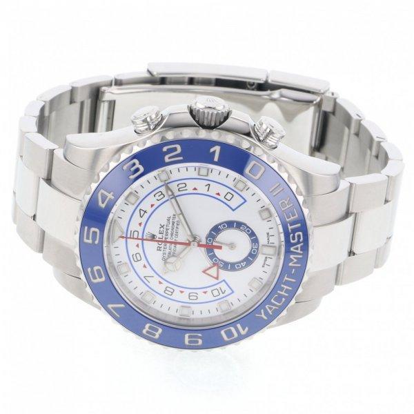 ヨットマスターⅡは、ロレックスのプロフェッショナルモデルの特徴である新しい針が採用された新ダイアルを搭載。視認性が向上し、デザインの美しさが際立つ。新しいダイアルのアワーマーカーは12 時位置が三角形、6 時位置が長方形で、より直感的に時刻を読み取ることができる。時針の先端は発光性のディスク型になり、分針とはっきり区別することが可能だ。ヨットマスターⅡは 1 分~ 10分までのカウントダウンをプログラムできる機能が搭載されている。プログラミングは機械に記憶されるため、リセットすると前回の設定に戻る。レース開始後は、公式カウントダウンに合わせ、瞬時に同期させることができる。